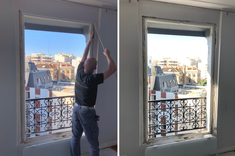 2- Vérification des mesures de l’ancienne fenêtre et protection des lieux.